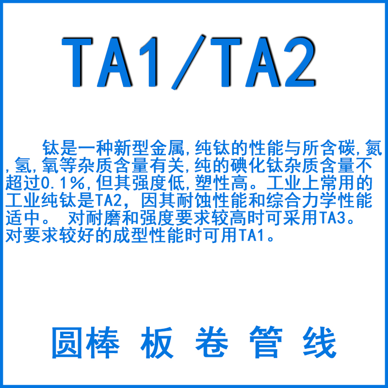 工業(yè)上常用的工業(yè)純鈦是TA2,因其耐蝕性能和綜合力學(xué)性能適中。?對(duì)耐磨和強(qiáng)度要求較高時(shí)可采用TA3。對(duì)要求較好的成型性能時(shí)可用TA1。