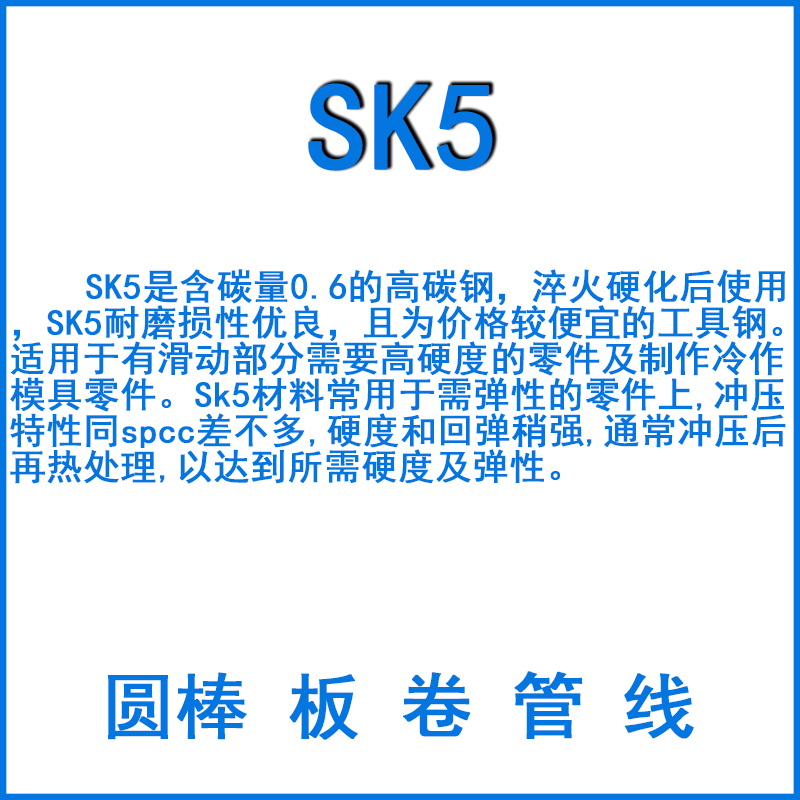 SK5是含碳量0.6的高碳鋼,淬火硬化后使用,SK5耐磨損性優(yōu)良,且為價(jià)格較便宜的工具鋼。
